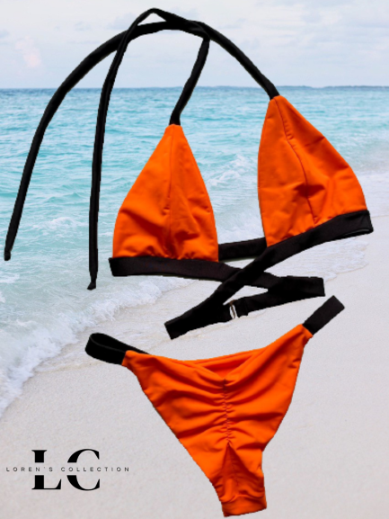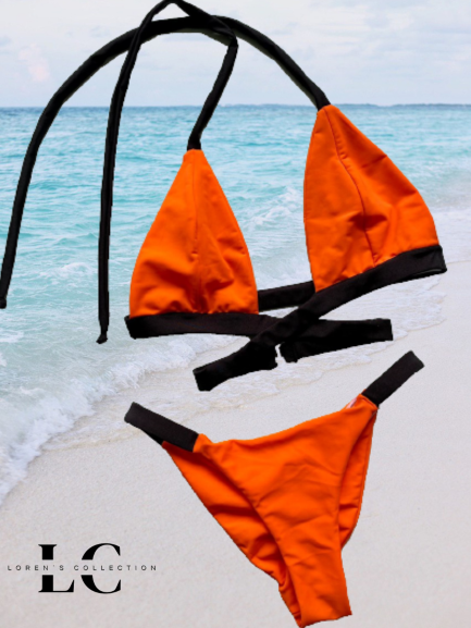 Vestido de baño de dos piezas bikini, tipo halter con tiras que se entrecruzan en espalda y parte delantera, dando la posibilidad de crear tu propio estilo
